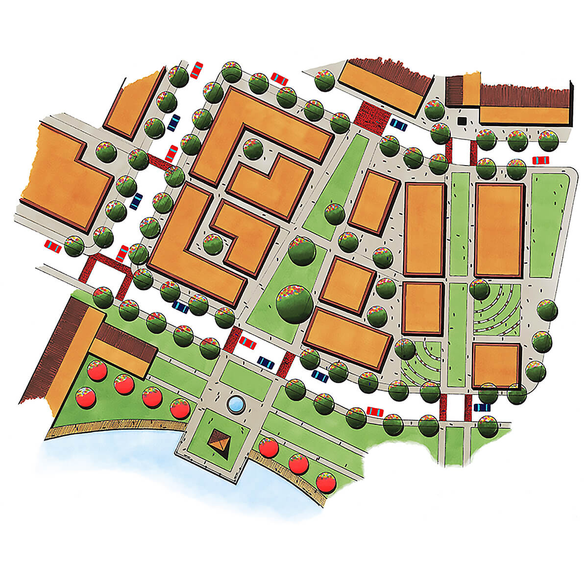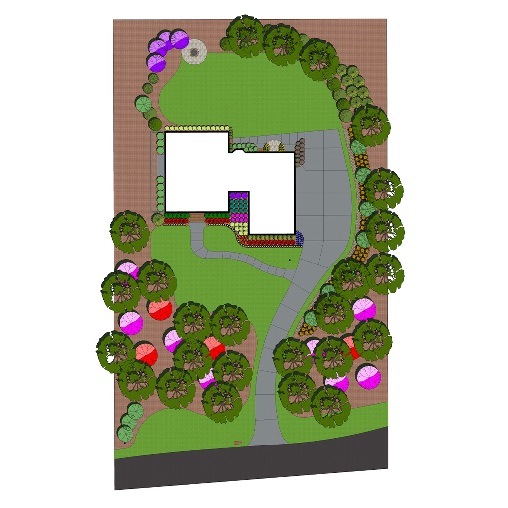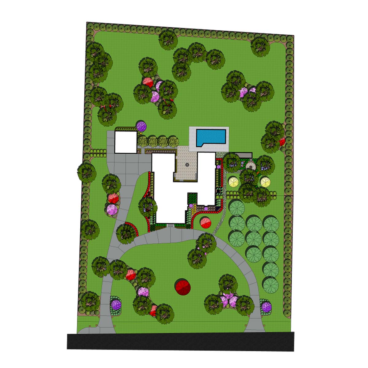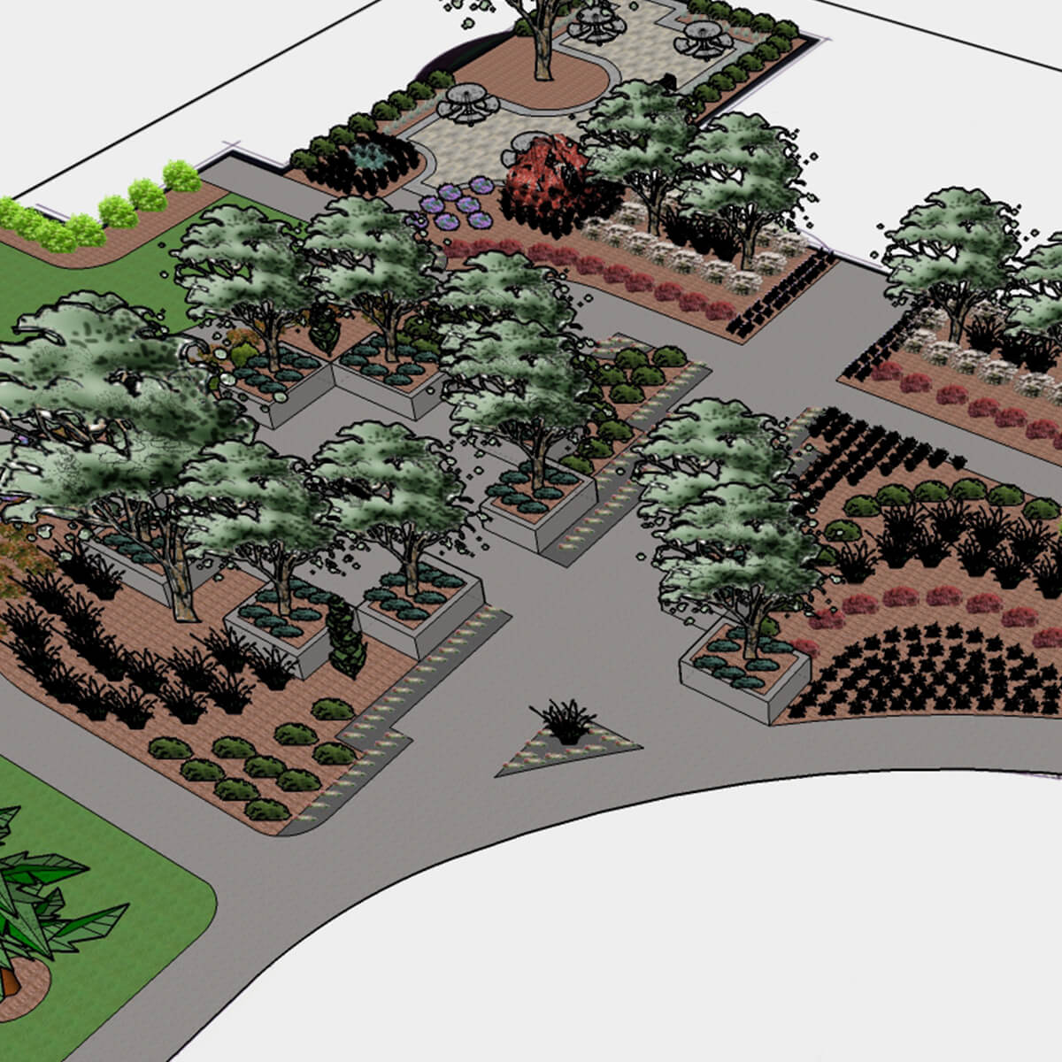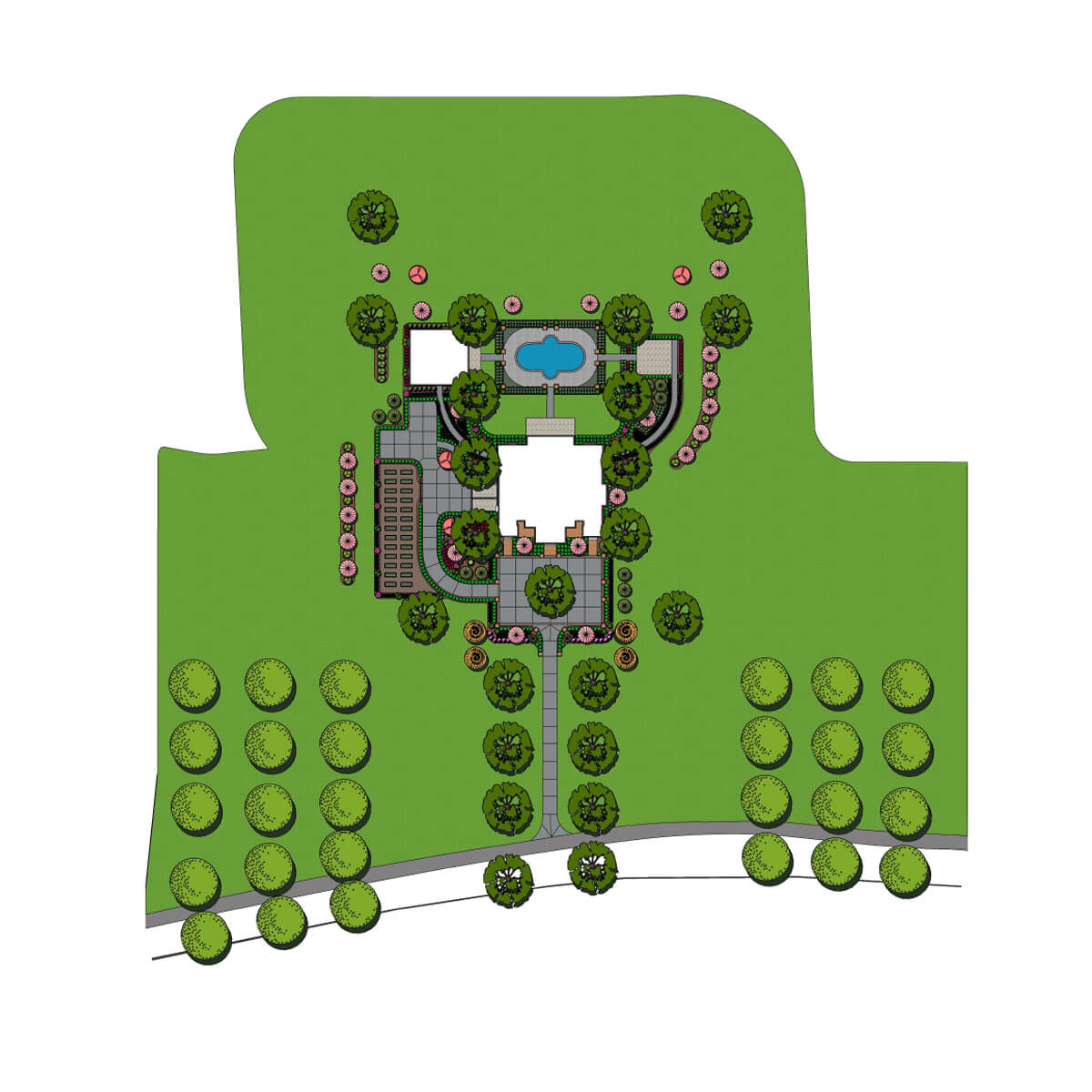 Now all of the stages culminate to the master plan. The project package is complete and includes a master plan, planting plan, drainage plan, irrigation plan, tree preservation plan, plant identification list, 3D model and flythrough as well as perspectives of high profile areas.