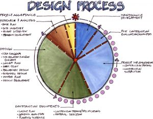 The design process is a framework or outline of steps that occur simultaneously. The success of the process relies upon the designer’s observation and the willingness of the client to be an integral part of the design. If the process is carefully thought through, the designer will continuously question all decisions to insure a successful project.